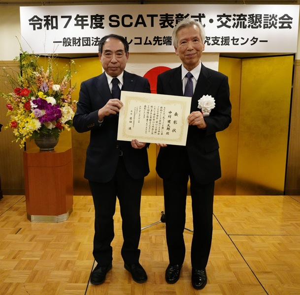 中村健太郎教授(センサ・プロセッシング研究コア)が,一般財団法人テレコム先端技術研究支援センター(SCAT)より,2025年度 SCAT表彰(会長賞)を受賞しました。