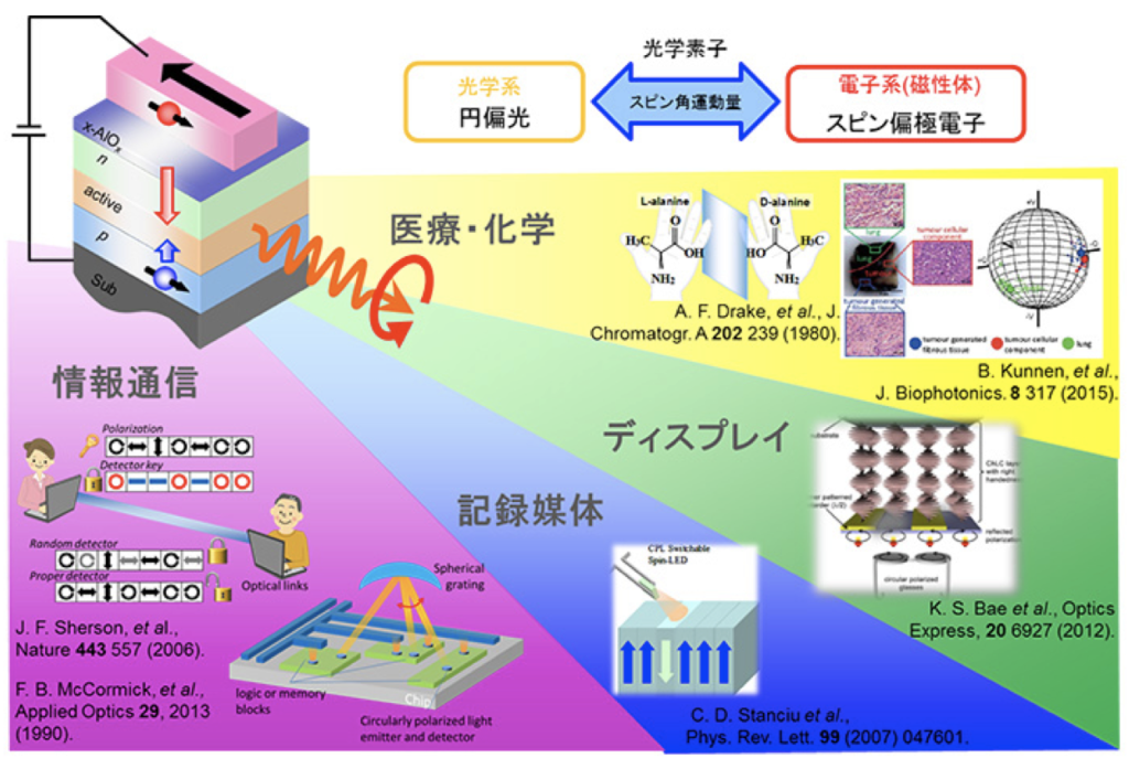 ・大電流下の発光で円偏光が増幅される現象を発見