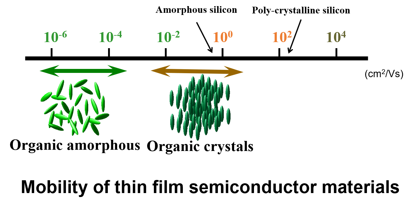Among such crystalline organic semiconductor materials, we are focusing on "liquid crystalline organic semiconductors" in which molecules aggregate and aligned on substrate in a self-organized manner.
