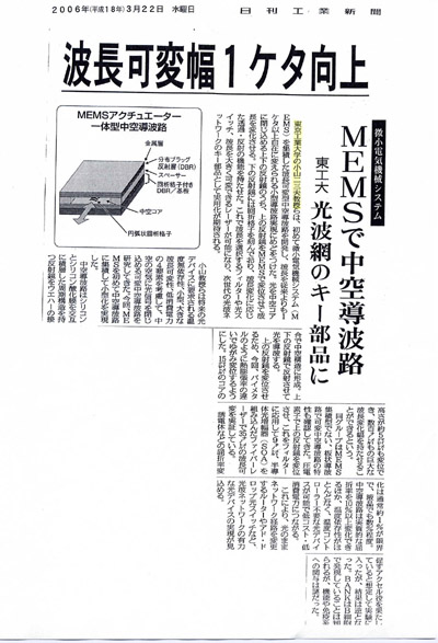 トップ > 最新情報 > 小山二三夫教授の研究が日刊工業新聞に記載されました.(2006年3月22日)